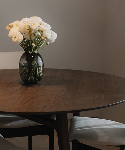Изделия коллекции Примо из массива дуба выполнены в округлых формах — дизайн мебели и благородные древесные отделки наполняют интерьер истинным уютом.