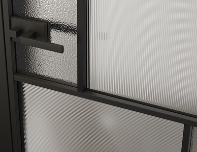 Лаконичный разделительный профиль внутренней раскладки полотна обеспечивает эстетический внешний вид конструкции и идеальную стыковку вставок из стекла.