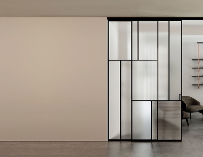 Во всех алюминиевых перегородках, независимо от типа установки, используется компланарный раздвижной механизм, благодаря которому декоративная крышка и полотно находятся в одной плоскости.