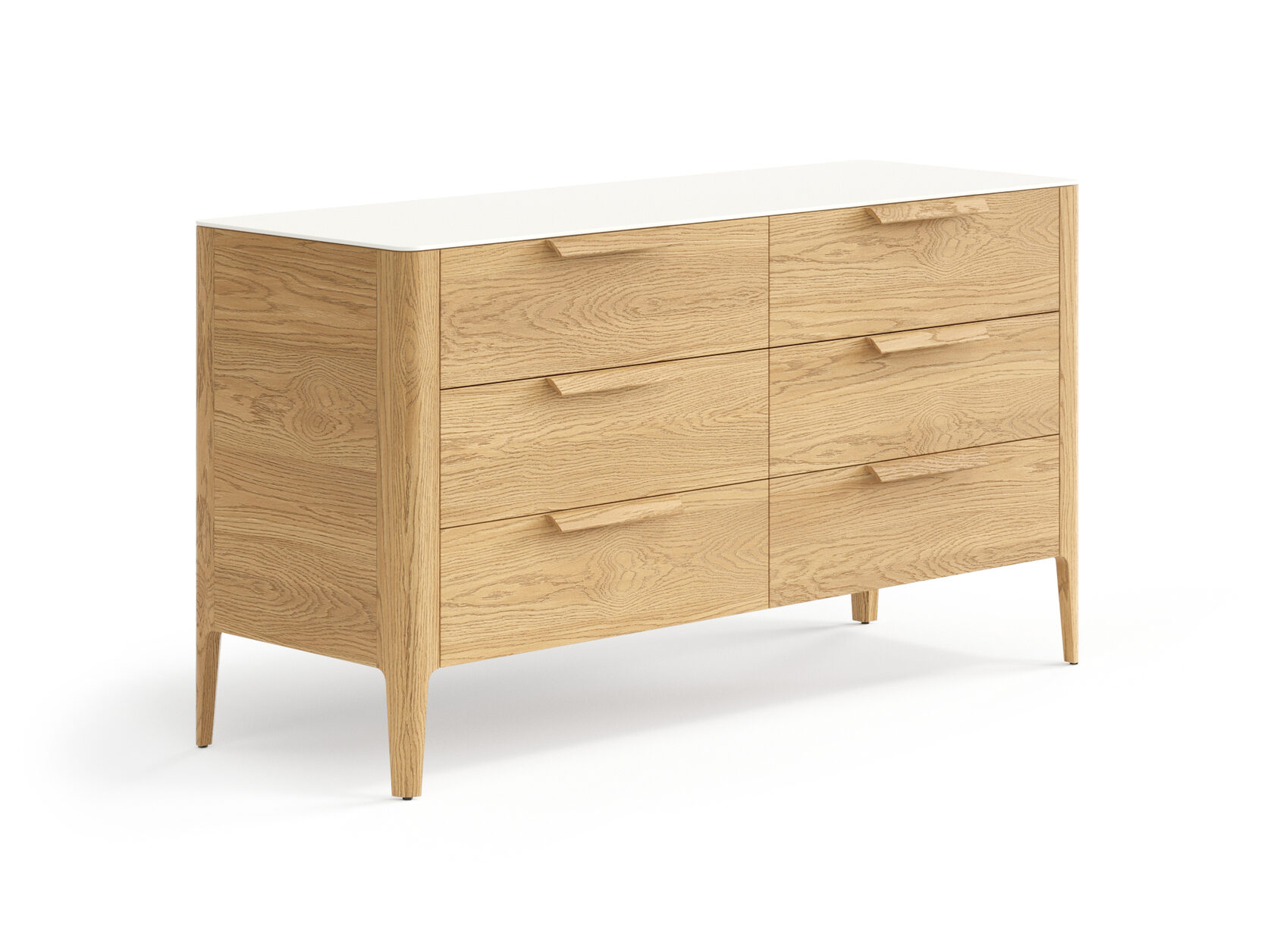 Изделие внесёт в пространство спокойствие и надёжность, искусно сглаженные формы и древесные тёплые отделки добавят природные мотивы. Благодаря скрытым направляющим выдвижных ящиков вид изделия остаётся безупречным всё время пользования. Количество циклов открывания и закрывания — 80 000. Это значит, что если вы будете пользоваться комодом дважды в день, изделие будет оставаться в идеальном рабочем состоянии и радовать вас примерно 55 лет.