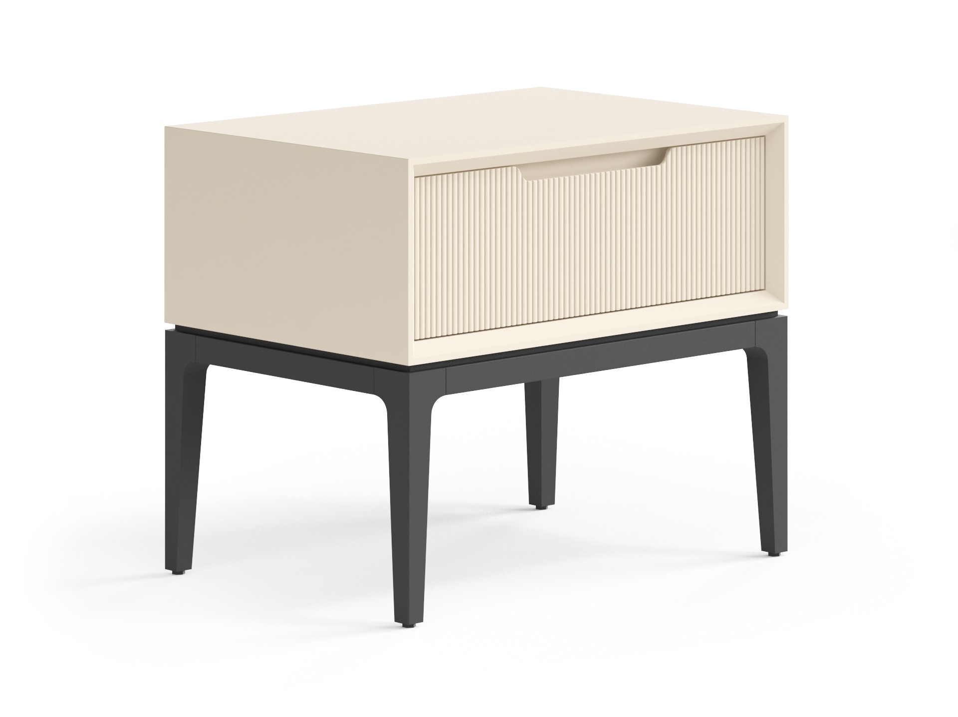 Стильная тумба гармонично впишется в интерьер спальни. Ножки могут быть в цвет корпуса или же в чёрном матовом покрытии эмалью — любое решение будет выглядеть элегантно и современно. Рельефная фрезеровка на фасаде приятна на вид и на ощупь, придаёт изделию индивидуальность и характер. Фрезерованная ручка выполнена специально для удобного захвата, а механизм продуман до мелочей — тихий и плавный, он делает ежедневное пользование изделием максимально комфортным.