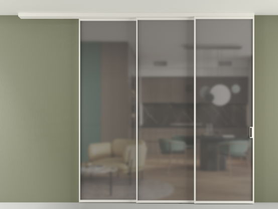 Перегородка Formato вдоль стены на потолок 3 створки с синхронным механизмом