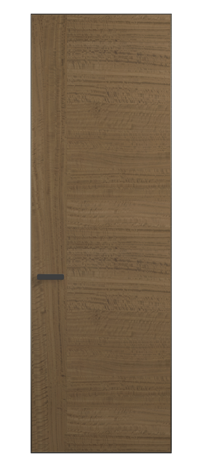 Полотно Рифт в скрытом алюминиевом коробе становится полноценным элементом декора. В коллекции представлено 9 моделей дверей в высоте до 3 метров. Рисунок раскладки шпона варьируется от простого до сложного. «Рубашка» для каждого полотна подбирается вручную по цвету, текстуре и фактуре.