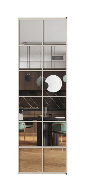 Минималистичный профиль повторяет форму профиля алюминиевых раздвижных перегородок Формато, что позволяет легко сочетать оба решения в одном пространстве.