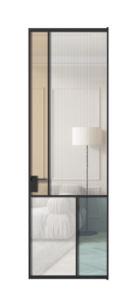 Лаконичный разделительный профиль внутренней раскладки полотна обеспечивает эстетический внешний вид конструкции и идеальную стыковку вставок из стекла.