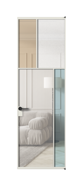 Лаконичный разделительный профиль внутренней раскладки полотна обеспечивает эстетический внешний вид конструкции и идеальную стыковку вставок из стекла.