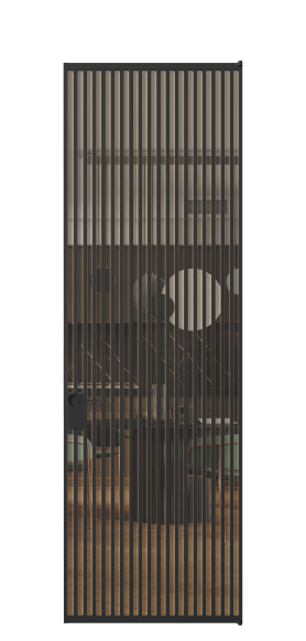 Минималистичный профиль повторяет форму профиля алюминиевых раздвижных перегородок Формато, что позволяет легко сочетать оба решения в одном пространстве.