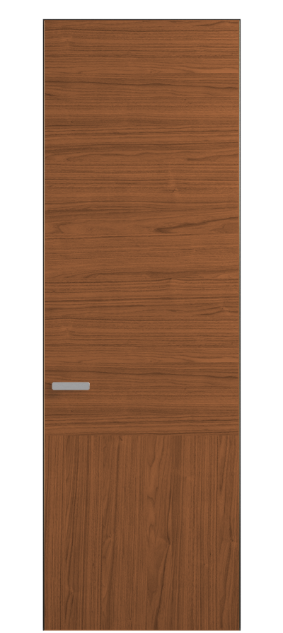 Полотно Рифт в скрытом алюминиевом коробе становится полноценным элементом декора. В коллекции представлено 9 моделей дверей в высоте до 3 метров. Рисунок раскладки шпона варьируется от простого до сложного. «Рубашка» для каждого полотна подбирается вручную по цвету, текстуре и фактуре.