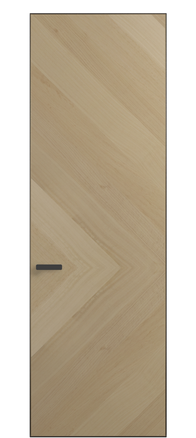 Полотно Рифт в скрытом алюминиевом коробе становится полноценным элементом декора. В коллекции представлено 9 моделей дверей в высоте до 3 метров. Рисунок раскладки шпона варьируется от простого до сложного. «Рубашка» для каждого полотна подбирается вручную по цвету, текстуре и фактуре.