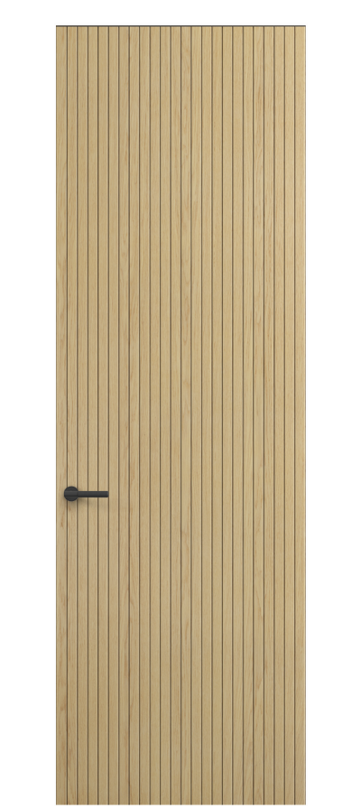 Селект — коллекция минималистичных дверей с фрезеровкой по натуральному шпону. Рельеф на поверхности полотна создаёт игру света и тени, добавляя пространству динамичности и визуального объёма. Двери Селект в сочетании со стеновыми панелями и мебельными фасадами, повторяющими лаконичный дизайн, создают единое стилевое решение.