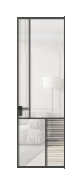 Лаконичный разделительный профиль внутренней раскладки полотна обеспечивает эстетический внешний вид конструкции и идеальную стыковку вставок из стекла.