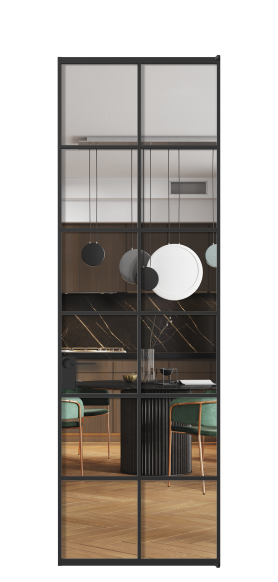 Минималистичный профиль повторяет форму профиля алюминиевых раздвижных перегородок Формато, что позволяет легко сочетать оба решения в одном пространстве.